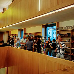 Zum Team gehören: Beatrice Akeret (Bibliotheksleiterin), Elena Bollhalder, Marina Furgler, Caroline Schneuber, Michèle Zutter.